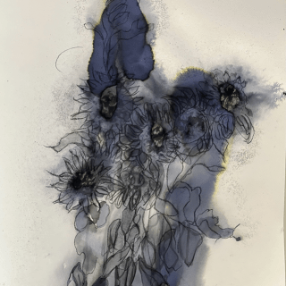 Une installation autour de la disparition. Ce ressenti est rattrapé par l’éternel renouvellement. Le corps représenté sur la toile est une suggestion de notre corps border-line, il est entouré de bourgeons : expression de la renaissance, du cycle de la vie. Une reconstruction de notre corps possible par la force des mémoires, puisé dans les…